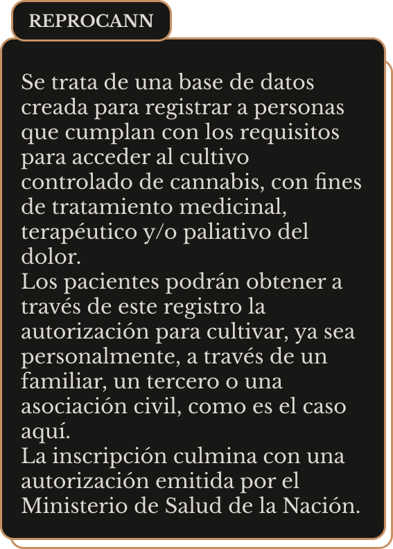 Se trata de una base de datos creada para registrar a personas que cumplan con los requisitos para acceder al cultivo controlado de cannabis, con fines de tratamiento medicinal, terapéutico y/o paliativo del dolor.